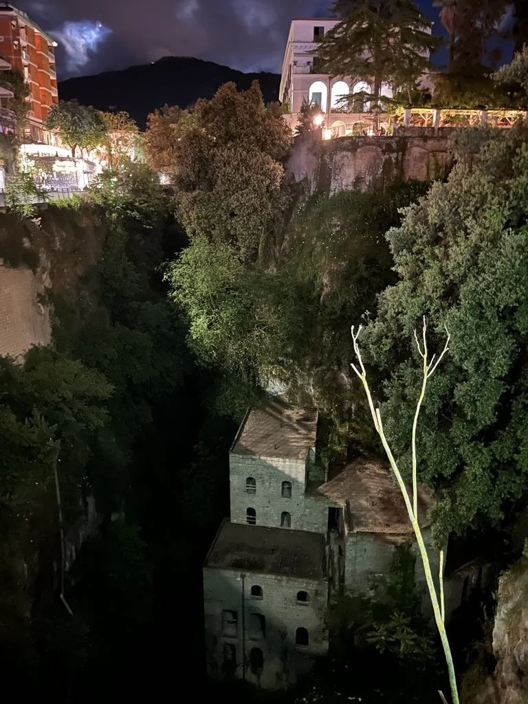 Tucked just off Sorrento’s bustling Piazza Tasso lies Il Vallone dei Mulini, or the Valley of the Mills—a dramatic, sunken gorge carved by volcanic activity some 35,000 years ago. Named after the old grain mills once powered by a natural stream, the valley was abandoned in the 1940s and has since been slowly reclaimed by nature. Thick with vines, moss, and crumbling stone, it now exists in a kind of green twilight, sustained by a unique microclimate that nurtures rare plant life. Though officially closed to the public, the valley can be viewed from above—offering a haunting glimpse into Sorrento’s hidden past and stirring more than a few questions about what secrets might still lie below.